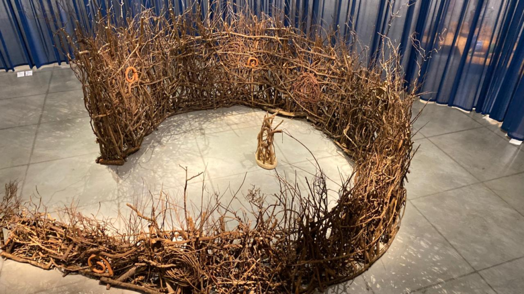 O evento conta com a exposição de artes goianas, como a peça ´´Muitos Nomes´´, construída pela artista indígena Sallisa Rosa, que é edificada sem nenhum tipo de amarração, além dos próprios galhos.